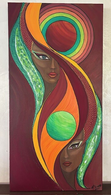 Deux présences féminines s’unissent dans une harmonie parfaite, symbolisant l’équilibre entre force et sensibilité, lumière et profondeur
